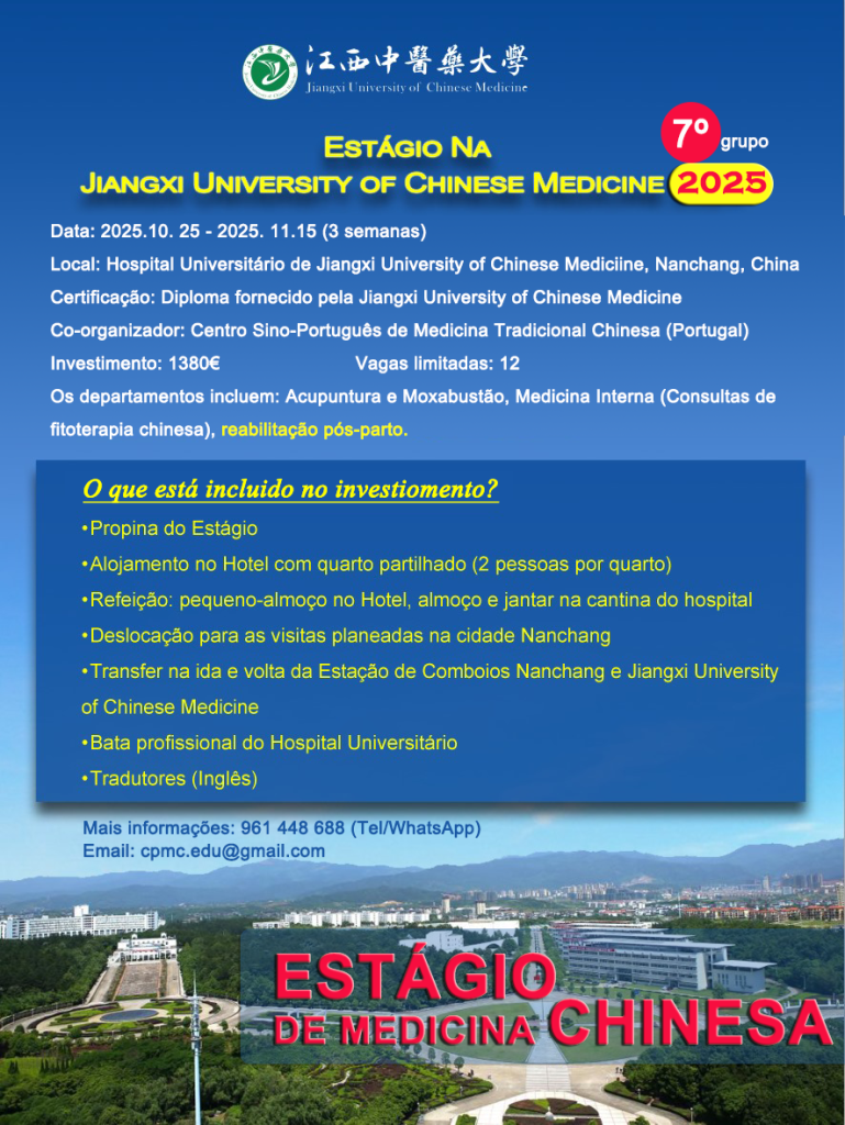 • Certificação do estágio: Diploma fornecido pela Jiangxi University of Chinese Medicine, China